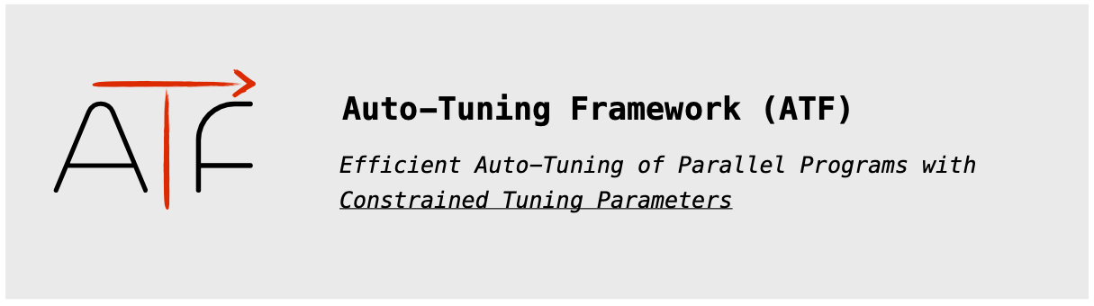 @inproceedings{10.1145/3708493.3712682, author = {Schulze, Richard and Gorlatch, Sergei and Rasch, Ari}, title = {pyATF: Constraint-Based Auto-Tuning in Python}, year = {2025}, isbn = {9798400714078}, publisher = {Association for Computing Machinery}, address = {New York, NY, USA}, url = {https://doi.org/10.1145/3708493.3712682}, doi = {10.1145/3708493.3712682}, booktitle = {Proceedings of the 34th ACM SIGPLAN International Conference on Compiler Construction}, pages = {35–47}, numpages = {13}, keywords = {CUDA, OpenCL, auto-tuning, constraints}, location = {Las Vegas, NV, USA}, series = {CC '25} } - C++-Based Interface